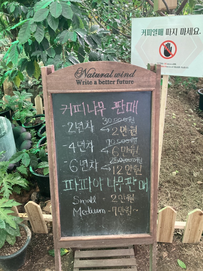 여기에서는 커피나무도 판매해요, 파파야 나무도 판매하구요.